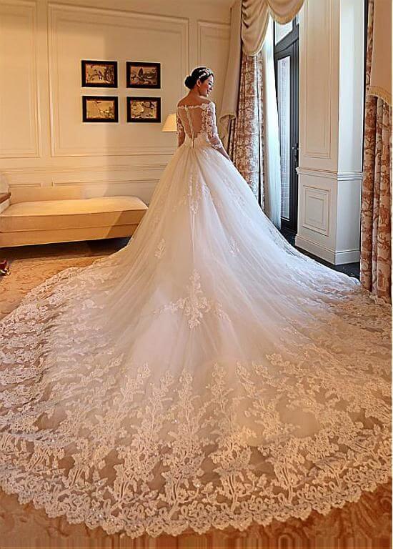 Nem véletlen, hogy ezt a típust elsősorban valóban a királyi család tagjai részesítik előnyben, mivel ezek a fazonok akár 3 méternél is hosszabbak lehetnek. Ez pedig különleges odafigyelést, folytonos törődést igényel. Nagyszabású, több száz fős, kiemelt publicitású eseményekkor viszont tökéletes választás azoknak, akik nem riadnak vissza a kihívásoktól még ezen a különleges napon sem, és képesek bármit megtenni az elegancia érdekében.