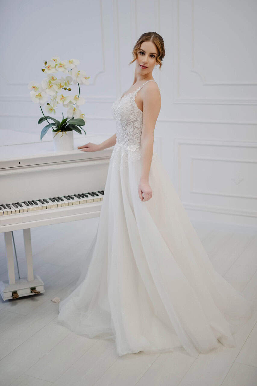 Az egyszerű szabású, finom esésű, letisztult vonalak egy kis csipke vagy gyöngy díszítéssel kiegészítve jó választás lehet bármilyen alkatú Menyasszonynak. A visszafogott, ám mégis nőies menyasszonyi ruhák az örök elegancia képviselői.